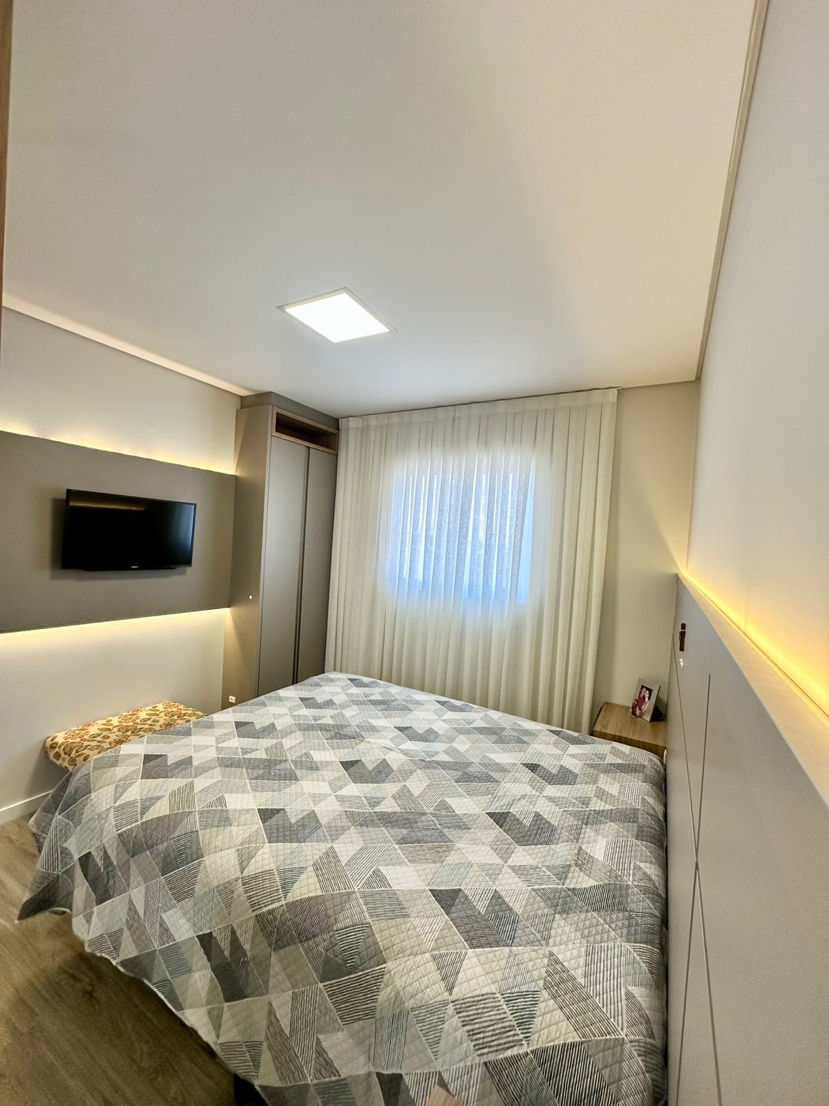* ELE POSSUI 01 SUITE, 01 QUARTO, BANHEIRO, SALA DE ESTAR INTEGRADA COM A COZINHA, LAVANDERIA E 01 VAGA DE GARAGEM *